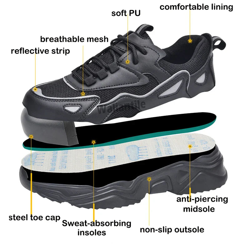 Waliantile Men Women Safety Shoes Sneakers For Industrial Working Puncture Proof Work Boots Indestructible Steel Toe Footwear